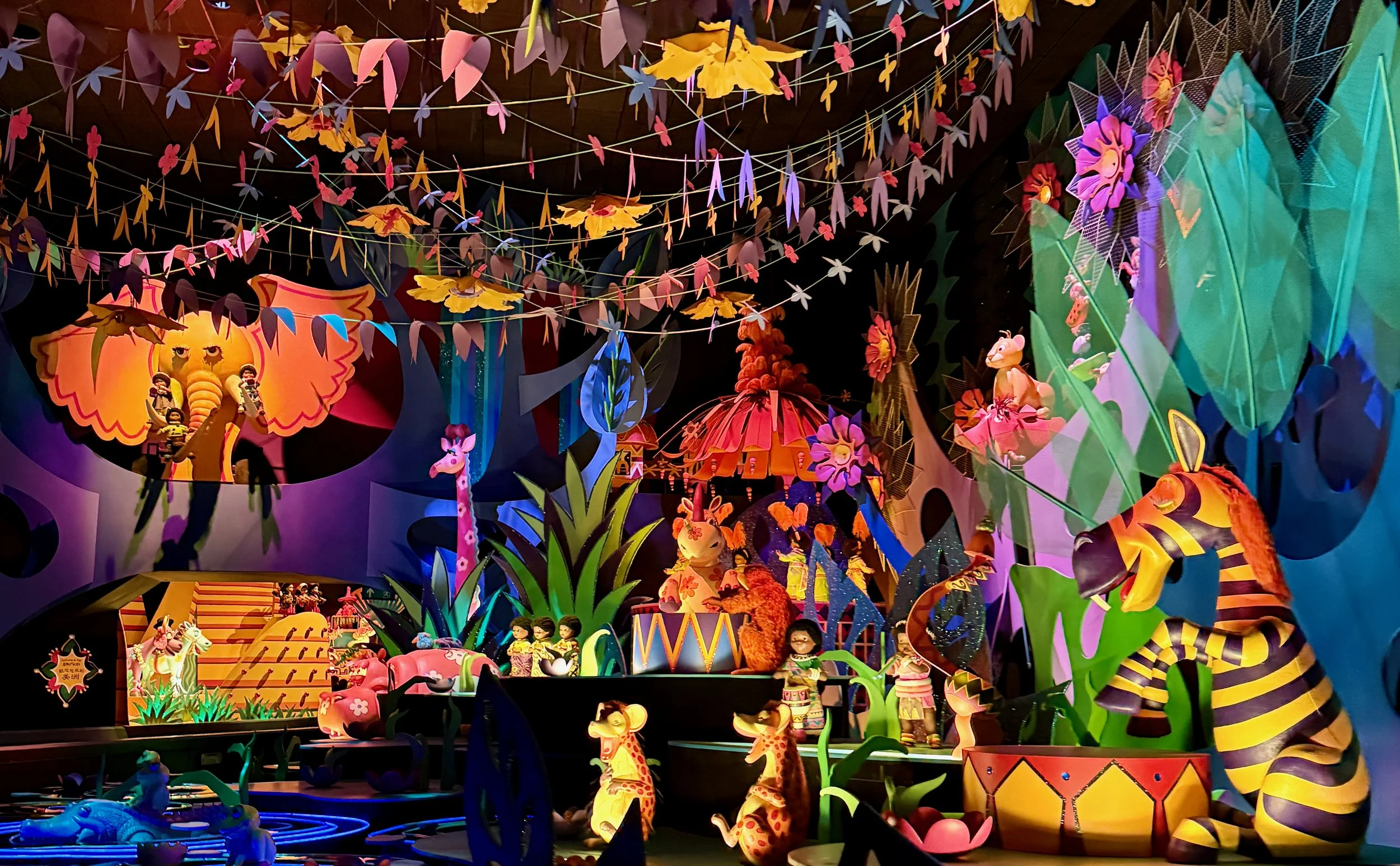 我和太太下午四點多先去遊覽了樂園最新的魔雪奇緣主題區,之後乘坐小小世界的遊樂小船,重溫多年前帶兩個兒子遊玩時的情境。然而,這次坐在小船上聽到「世界真細小」的樂曲時,我卻有感而發,感概童話世界與現實生活的巨大差別。