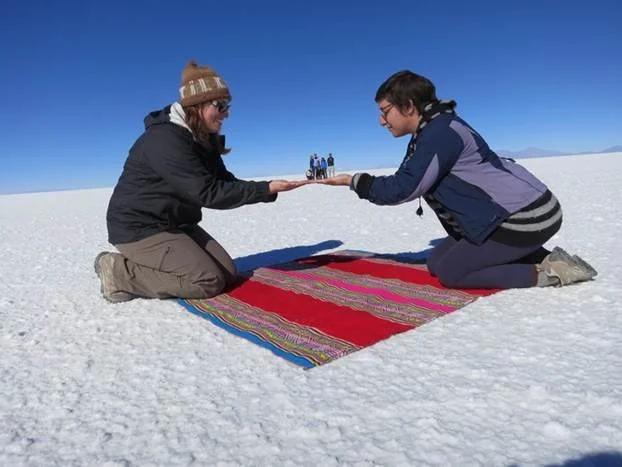 地面乾旱時,烏尤尼鹽沼是一望無際的純白「六角地磚」。由於面積平坦空曠,地表反射率高,這裡是一個理想的測試和校準地球觀察衛星之地。望著一片無際的白色平原使眼睛的距離感減低,令我們能拍下一些有創意性有獨特性的照片。
